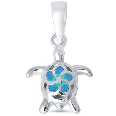 Blue Opal Plumeria Turtle .925 Sterling Silver Pendant quantity