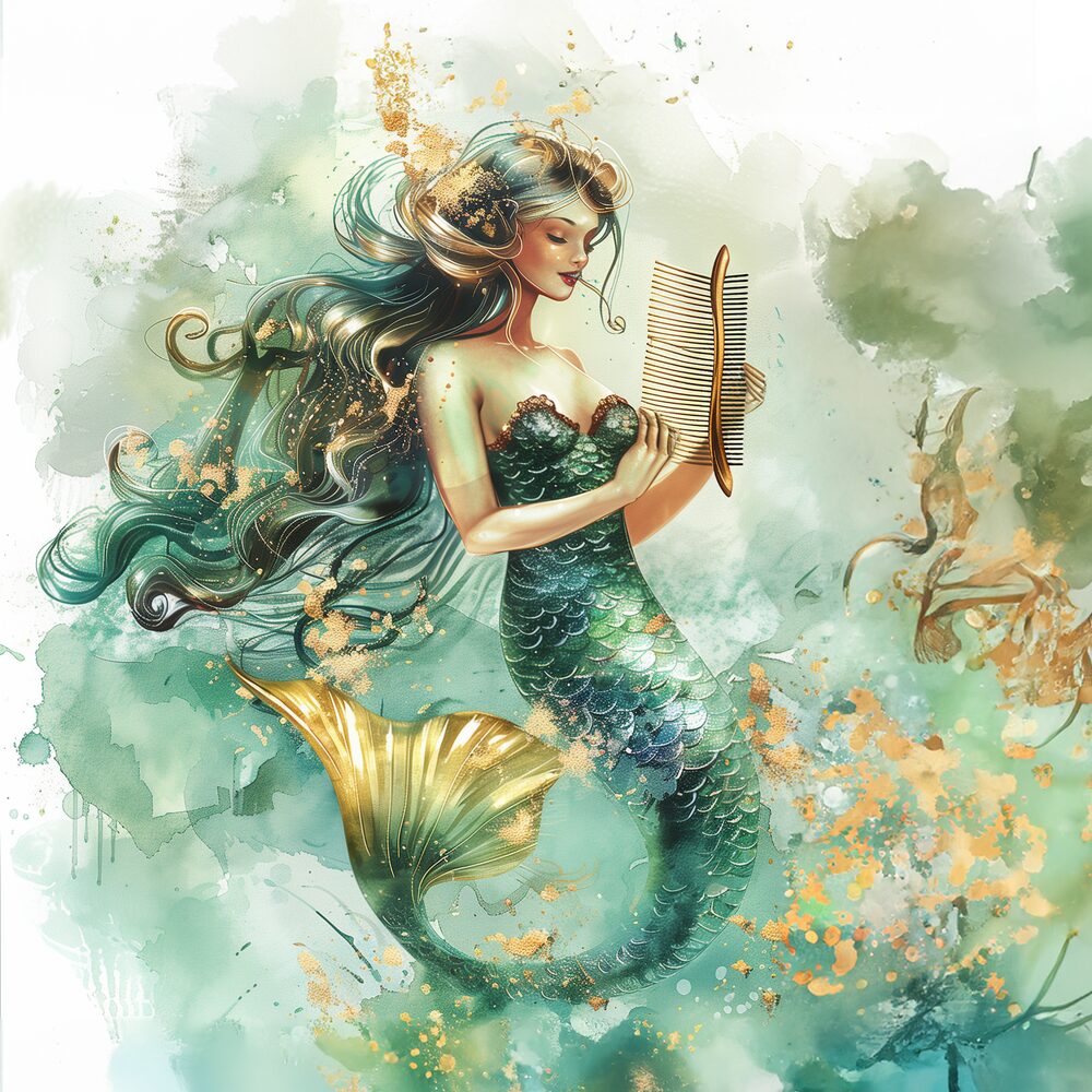 Your hair is an antennae to the higher realms. This is why the Mermaids have long hair. Hair follicle cells release ATP and serotonin in response to tactile stimuli. The comb is the perfect amulet in activating these sensory neurons. The mermaid comb has also been embellished with squid ink and 24 kt. Gold in amplifying the conductivity of this neurotransmission.