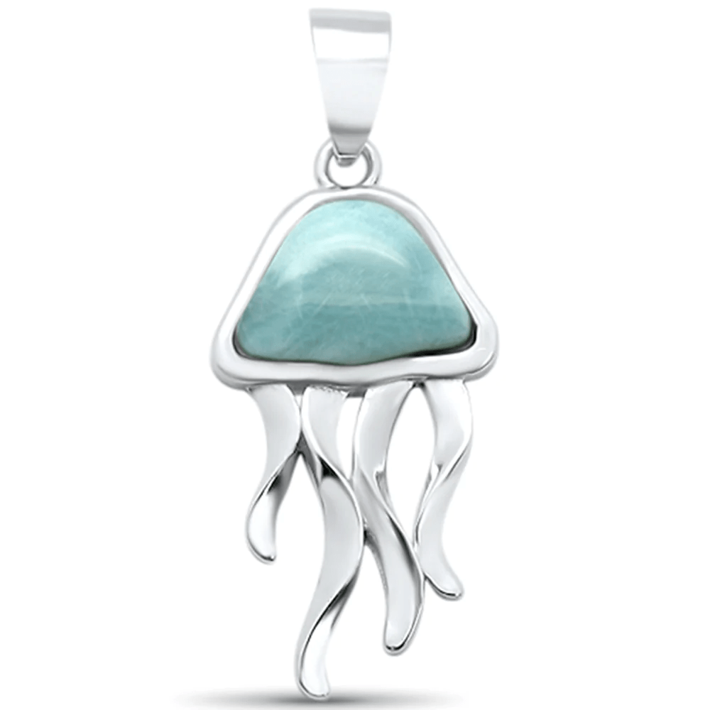 Natural Larimar Jellyfish .925 Sterling Silver Pendant quantity